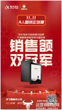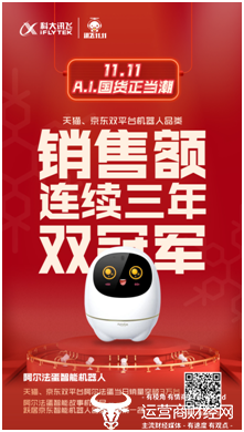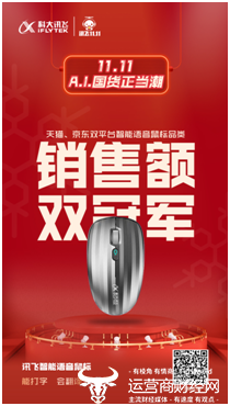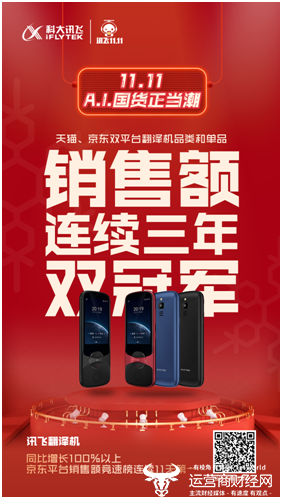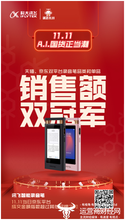 继科大讯飞A.I.国货在今年618年中大促一鸣惊人,斩获五大品类六项第一,此次又在如火如荼的双11大促中高调出场,力压群雄,斩获天猫和京东双平台六大品类六组第一,双11期间(1-11号)销售额同比增长128%,11.11当日销售额同比增长116%。可谓是创历史新高。