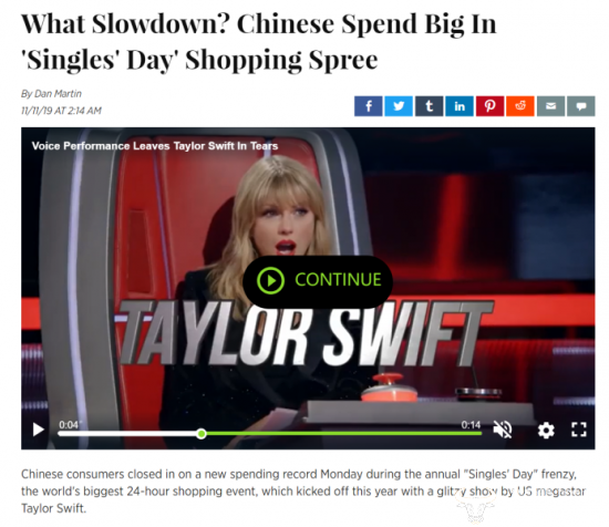 实际上,天猫双11已经越来越多被用作研究中国经济的指标之一。除《华尔街日报》外,法新社在天猫双11当天题为《啥经济减速?中国人在双11慷慨解囊》一文中也清晰地表达了相同的观点。