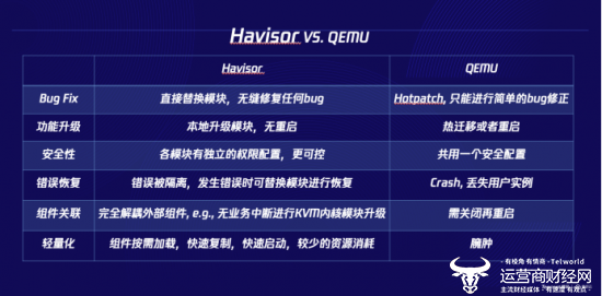 腾讯云专家工程师肖光荣介绍,腾讯云新一代自研极速虚拟化技术方案Havisor,着眼于在虚拟化中取代QEMU。其灵活的模块化设计,能够在Bug修复、功能升级、安全性、轻量化等方面提升hypervisor整体能力。