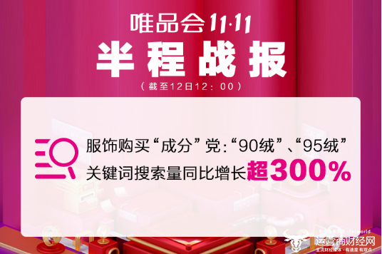 11月12日,唯品会11.11特卖狂欢节公布了半程战绩:截至12日中午12点,订单量破2000万单。唯品会品牌特卖的11大品类中,服饰穿戴类商品保持主力军地位,其中羽绒服、女靴、大衣、针织衫、卫衣等应季服饰成为明星品类。