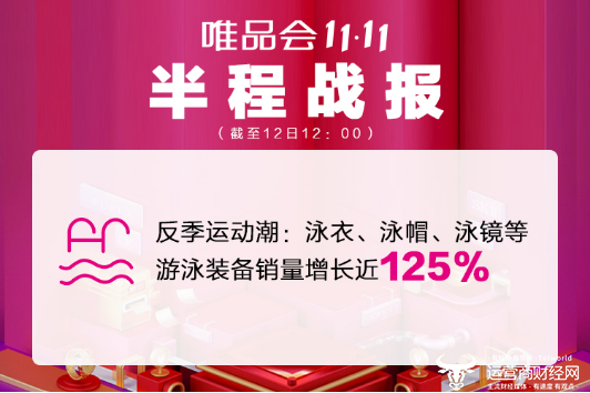 即使到了冬季,人们对户外运动的热情不减反增。唯品会11.11特卖狂欢节半程战报数据显示,唯品会体用类销售Top3的品类分别是运动休闲鞋、运动卫衣、运动套装,滑雪服、登山鞋等专业体用服饰的销量增幅明显。与此同时,户外运动装备在注重功能性的基础上,呈现出年轻化和新潮化的发展趋势。值得注意的还有“反季运动潮”,截至12日中午12点,唯品会11.11大促中泳衣、泳帽等游泳装备销量同比增长近125%。