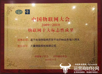 天翼物联基于电信物联网开放平台的NB业务接入网关入选物联网十大标志性成果,不仅是对中国电信天翼物联在物联网行业耕耘成果的肯定,也是对中国电信天翼物联的激励。