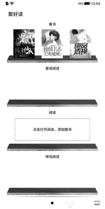 为了让用户深度阅读,海信阅读手机A5还加入了极简模式,用户从屏幕界面上滑即可进入。极简模式里,阅读属性凸显,放置了看书、掌阅、阅读、咪咕阅读平台的书架,其它屏幕则提供天气、时钟等信息,用户可以根据自身选择自建面板。