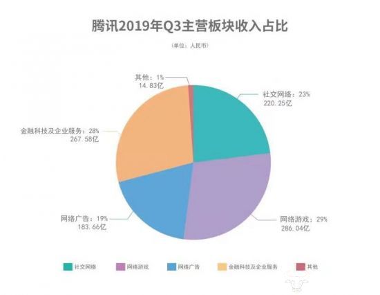作为腾讯的“中生代”业务,腾讯金融科技在这次财报中大放异彩。即使考虑到2019年1月后备付金统一由央行管理而减少利息收入,三季度腾讯金融科技及企业服务收入增速依然保持在36%,贡献了近三成腾讯营收收入,已经成为腾讯稳定的盈利增长点。