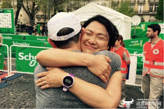 跑过巴黎马拉松的终点,潘石屹的脸上全是砂子,顾不上擦去这些体内排出的盐,老潘一把就把身边一起冲过终点的妻子张欣揽在怀里,结结实实地来了个拥抱,许久没有松开。
