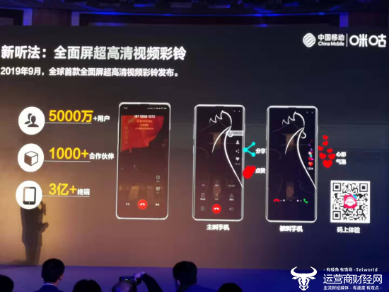 11月14日,2019中国移动全球合作伙伴大会媒体沟通会正式举行,会上咪咕副总颜忠伟介绍了中国移动9月份新推出的全球首款全面屏超高清视频彩铃业务。