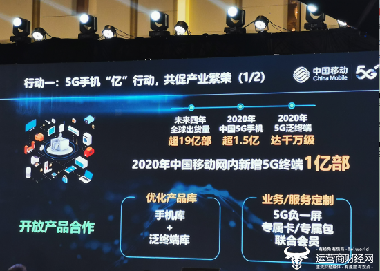 11月15日,在广州举行的2019中国移动全球合作伙伴大会上,移动集团市场部副总经理首建国介绍了2020年,中国移动5G终端的出货量等情况。