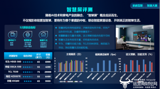 围绕家庭互联领域,该报告对智慧屏、智能组网终端(高端电力猫、无线路由器)、WiFi6技术等进行了测评。