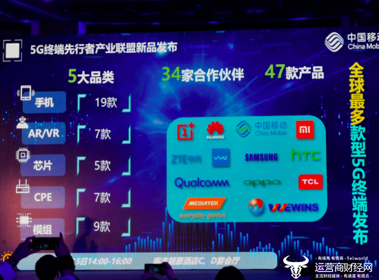 2019年,中国移动在泛智能终端合作方面,合作品牌超过240个,预计全年网内新增手机终端超过3亿部,网内新增5G手机近百万部,份额超过65%,信用购规模居行业第一,超过2000家门店开展终端优惠购,取得初步成效。