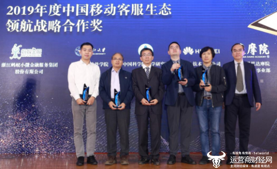 在论坛的压轴部分,中移在线向中科院声学研究所、华为、阿里巴巴达摩院、浙江大学软件学院、蚂蚁金服颁发了“2019年度中国移动客服生态领航战略合作奖”;向合力亿捷、新方通讯、晟盾电子、远传信息颁发了“2019年度中国移动客服生态最佳应用贡献奖”;并向云客服产品客户顺丰、广汽新能源、宁波银行、贵州茅台、保多多保险颁发了“2019年度中移云客服MVC客户”荣誉,对广大政企客户、合作伙伴的信赖,表达了感激之情。