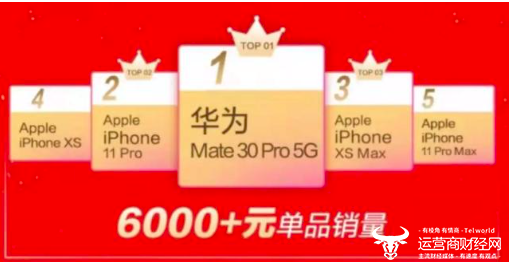 据京东数据显示,11.1至11.11,在6000+价位段手机销量排行中,华为Mate30 Pro 5G销量排行第一。