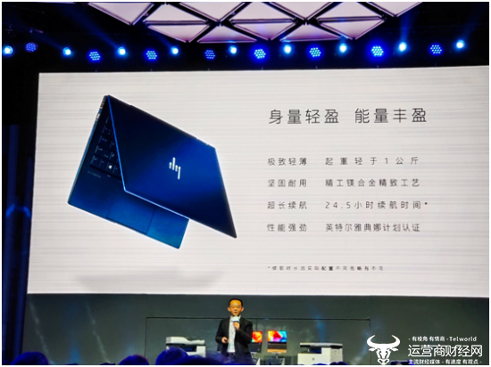 周信宏介绍到,惠普Elite蜻系列移动超能版轻薄笔记本整体实现了身量轻盈,能量丰盈。外观设计上,其实现了极致轻薄,起重轻于1公斤,并且外观材质实现精工镁合金精致工艺,坚固耐用;在续航方面,这款产品是此案24.5小时的超长续航时间;配置上,此次这款产品采用英特尔的芯片,性能强劲,该款芯片是实现英特尔雅典娜计划认证的产品,属于旗舰级产品,也足以看到惠普Elite蜻系列笔记本的高性能。