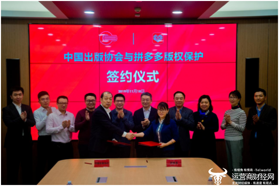 11月18日,通过国家版权局协调指导,中国出版协会与新电商平台拼多多在上海正式签署《知识产权保护合作协议》,双方将在完善知识产权保护合作机制,协助处理盗版侵权行为和促进电商图书销售等领域展开深入合作,共同推动出版行业健康、有序发展。