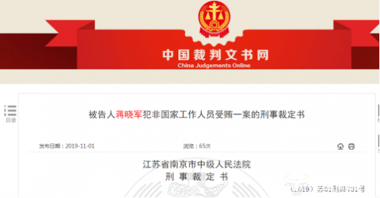 据中国裁判文书网显示,《被告人蒋晓军犯非国家工作人员受贿一案的刑事裁定书》如下: