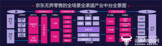 京东双引擎的无界零售价值网络是以零售交易平台为基础、去中心化的产业赋能中台为核心,基于京麦、宙斯等开放平台,通过开普勒、零售助手等以客户需求为导向的开放赋能解决方案,连接服务商、代理商、推客机构等合作方,打通流量APP、线下门店等前端场景,形成全场景全渠道的价值网络。