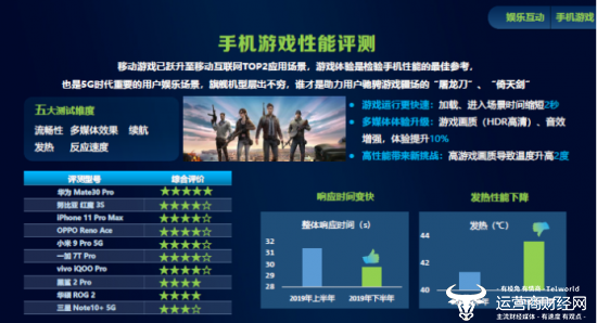提及手机性能,很多用户最先关注的就是玩游戏是否顺畅?卡不卡?可以说,游戏体验是检验手机性能的最佳参考。对此,中国移动终端实验室经过全面测评,得出结果:从整体来看,手机游戏运行速度较之2019年上半年要更快速,加载、进入场景时间缩短了2秒。