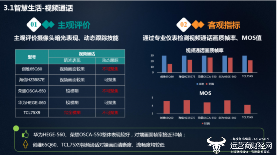 作为未来家庭智慧中枢的存在,智慧屏可以联动手机和智能家居设备,提供除了影音播放之外的各种创新业务体验。评测发现,在智慧生活维度上,随着智慧屏硬件升级,家庭娱乐业务兴起,包括视频通话、多屏互动、AI健身、家庭K歌等,此外联动家居生态也拓展较快。5款产品中华为HEGE-560视频通话画质帧率较高,接近30帧,游戏同屏表现最好,其余产品存在视频通话帧率低于25帧、多屏互动时延长达6秒现象,视频同屏和游戏同屏甚至会卡顿花屏,严重影响用户感知。