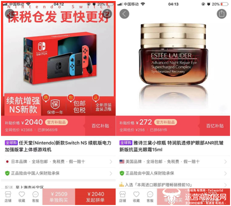 ▲任天堂Switch游戏机、雅诗兰黛小棕瓶等进口商品,在拼多多全球购上深受消费者喜爱