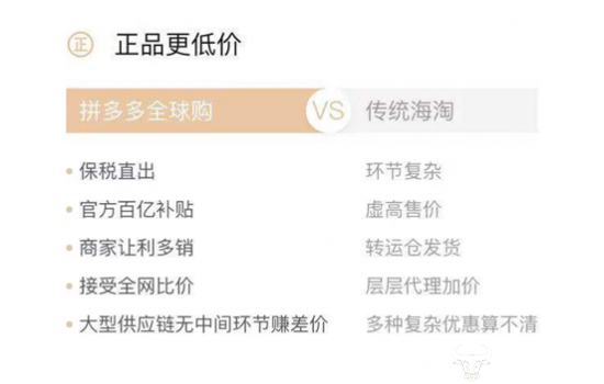 为了达成“全球最低价”,拼多多全球购在商家端采用“0佣金”政策,商家每达成一笔交易,平台不收取任何交易佣金,商家只需向支付通道缴纳极低的支付手续费。对所售的商品,平台采用了保税直出、百亿补贴,以及采自大型供应链,无中间环节赚差价等综合举措,大幅降低了进口商品进入国内消费市场的成本。
