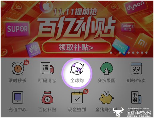▲拼多多的跨境电商业务全球购,目前位列拼多多APP一级入口