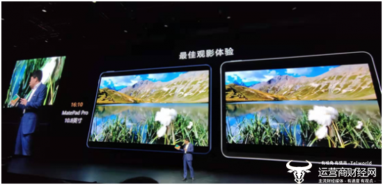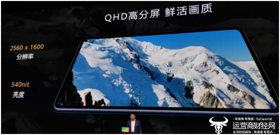余承东指出,MatePad Pro是全球最高屏占比平板,10.8英寸,具有90%的屏占比;采用QHD高分屏,2560*1600分辨率、540nit,画质鲜活,同时DCI-P3电影级色域,能给人以最佳观影体验。