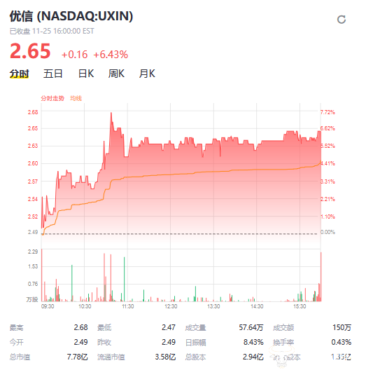 北京时间11月25日16时,拼多多、好未来、百度、58同城等多家中概股迎来上涨,涨幅不一。其中,国内最大的二手车电商平台优信收报2.65点,上涨6.43%,成交量达57.64万,振幅8.43%,涨幅较大,位居中概股前列。据悉,优信此前一度上涨13.77%,荣登《2019中概股最具投资价值TOP 50》,优信二手车因其首创的全国购业务模式得到多数投资人的高度认可,拉动了股价的大幅上涨。