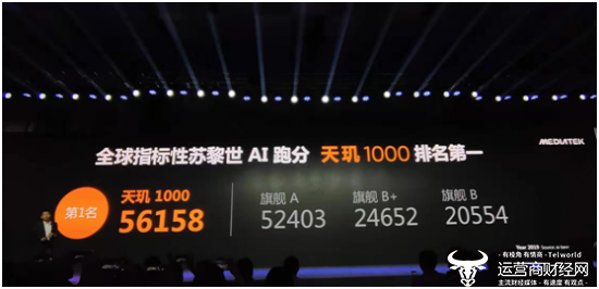 在APU上,天玑1000拥有全新的APU3.0高性能AI处理器架构,并且全球指标性苏黎世AI跑分是56158,在AI算力上看,天玑1000拥有4.5 TOPS的AI算力,相比于APU2.0,其性能提升2.5倍,能效提升40%;拥有2大核,3小核,1个微小核。