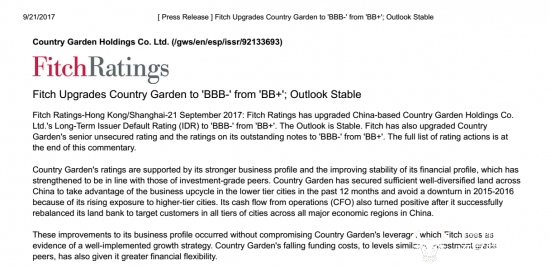 (碧桂园荣获惠誉投资级评级 资料来源:公开资料)