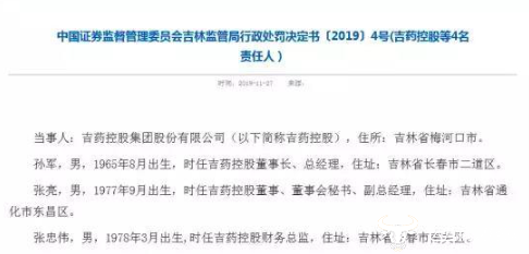 近日,吉药控股因信披违规被证监局处以责令改正的警告措施,并处以60万元罚款,三大高管也收到了相应的处罚。