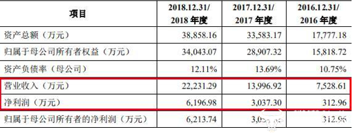 根据公司日前发布的IPO招股书,2016~2018年,三友医疗先后实现营业收入7528.61万元、1.4亿元和2.22亿元,同期分别创造净利润312.96万元、3037.3万元和6196.98万元。
