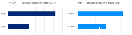 报告显示,从2017年到2019年,微信购物端下单用户数实现持续增长,其中2018年同比增幅达到42%,给京东带来了巨大的流量。消费者在社交平台偏爱购买哪些商品?报告显示,从三年11.11大促各品类各渠道购物用户数占比变化来看,微信购物用户数占比提升较多的品类为生鲜、食品饮料、家具、玩具乐器和酒类。新老用户也呈现出不同消费特色,从三年11.11大促新用户在各渠道购物用户数占比变化来看,微信渠道购物新用户占比明显提升,2019年11.11期间占比较2017年11.11提升10%;同时对比老用户的各渠道购物情况,新用户微信渠道占比要高出老用户14%。