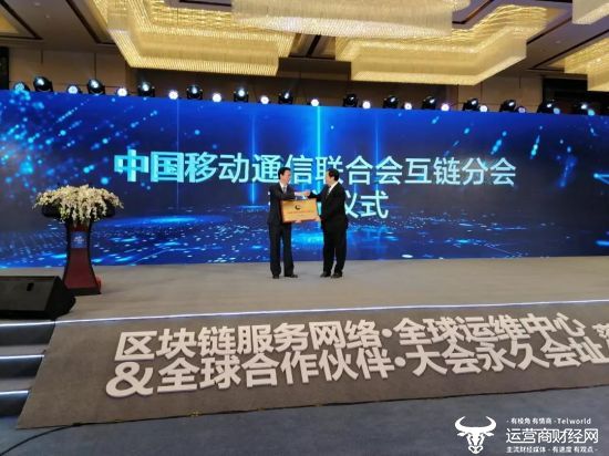 12月1日,由国家信息中心主办,杭州市政府、中国移动浙江公司承办,下城区政府、中国移动杭州分公司承办的首届区块链服务网络合作伙伴大会暨区块链服务网络助力社会治理和城市大脑下城平台试点启动仪式在杭州举行。会上,由中国移动通信联合会发起成立的全球首家互链网社团组织落户杭州,中国移动通信联合会执行会长倪健中向杭州下城区委书记刘颖授予了中国移动通信联合会互链网分会牌匾。