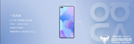 华为nova6系列采用6.57英寸双摄极点全面屏的设计,正面全面屏分辨率高达2400*1080,20:9的屏幕比例,两颗性能强大的摄像头置于屏幕左上方。先进的双盲孔技术,将镜头置于屏幕之下,卓越工艺追求,带来更小孔径(5.08mm),美观而独具识别度。创新的侧边指纹键和电源键二合一设计,使用业界最窄的2.4mm指纹模组,解锁一触即达。