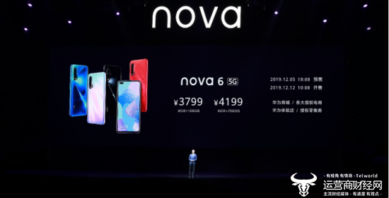 发布会上对华为nova6系列价格进行了公布。华为nova6 8GB+128GB版售价3199元;华为nova6 5G 8GB+128GB版售价3799元,8GB+256GB版售价4199元。今日18:08华为nova6系列在华为商城等各大电商平台及华为体验店、华为授权店等开启预售。12月12日10:08,华为nova6全系列将在线上线下平台全面开售,欢迎nova星的小伙伴们来nova6的世界尽情享受自拍的乐趣。