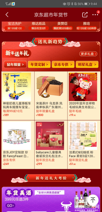 此外,京东超市更是借着《奇葩说》IP强势逆袭圈粉,以“钱是省出来的还是挣出来的”辩题为核心,与无数网友隔空battle,凭借着社交属性无形中延长了消费者的页面停留时间,使得京东超市先线上线下领先商超地位更加稳固。据悉,在此次年货节期间,除了遍布全程的“买贵就赔”价保外,京东超市也联合故宫IP焕发老字号新活力,推出多重国风好礼,让国货变得更有新意。同时,京东超市还将推出春节不打烊专题,让消费者在过年期间依旧能享受到京东的优质服务,带给每位消费者一份温馨。