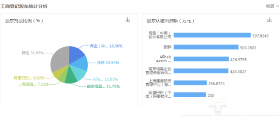 资料显示,易果电子成立于2005年,该公司法定代表人为易果生鲜网CEO张晔。在股权结构方面,淘宝(中国)软件有限公司为易果电子最大股东,持股16.56%;张晔为第二大股东,持股13.94%;Alibaba.com HongKong LImited及阿里巴巴(中国)网络技术有限公司分别持股11.83%、6.92%,分列第三及第六大股东。