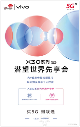 此前,vivo iQOO Pro 5G版和NEX 3 5G版两款重磅产品已加入中国联通5G终端阵营,均取得了较好的市场反响。相信随着vivo X30系列12月24日在中国联通渠道的开售,双方势必再创佳绩!未来,中国联通将持续推进5G终端市场化,并携手vivo等众多厂商及合作伙伴,积极构建5G终端产业链新生态,全面加速5G终端的发展与普及。