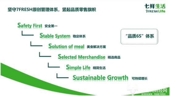 以七鲜生活为例,店内数千种商品以京东垂直供应链为主,7FRESH研发供应链和7FRESH本地供应链为辅,从而实现优选精准化、餐饮标准化、需求满足本地化,来打造商品核心竞争优势。此外,7FRESH坚持做品质零售,七鲜生活同样融合了6S品质零售体系以此作为基点提供贴心服务赢得消费者的信赖。