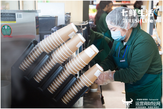 此外,针对社区家庭结构特点,七鲜生活会优先选择可供一个3-5口之家的餐食产品,并推出爆款美食,涵盖早餐、上午茶、午餐、下午茶、晚餐、夜宵这6个时段。例如首店在售的咖喱鸡饭、烘焙产品、现磨咖啡等,这些均出自7FRESH自身的研发供应链。所谓研发供应链,即餐饮产品的标准化的过程,在保证食品安全、精准选品等方面有着独特价值。