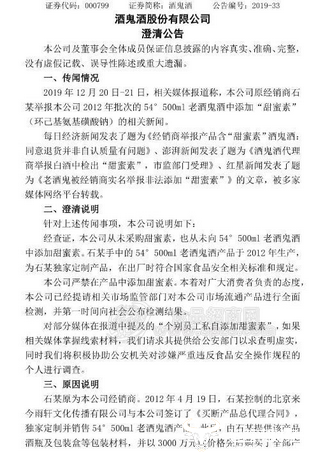 近日,随着原经销商石磊实名递交酒鬼酒添加甜蜜素材料、酒鬼酒发布公开声明、石磊回应、酒鬼酒发布澄清公告“没买、没加、没销售”等一系列动作,将酒鬼酒一度推向舆论风波。