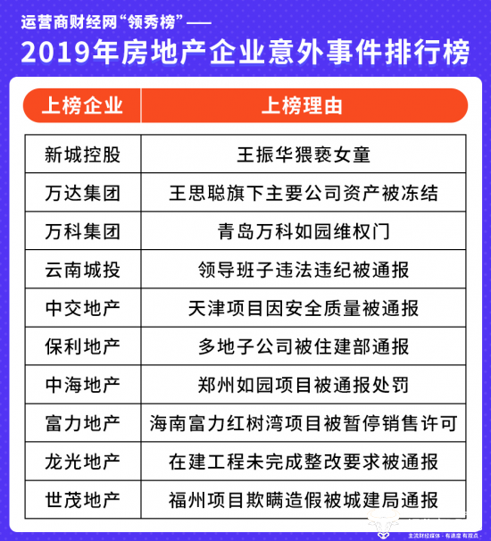 附:2019“房地产企业意外事件榜” 上榜榜单