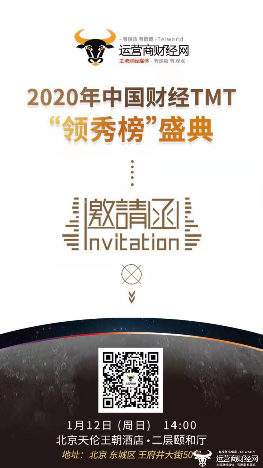 由运营商财经网主办的“2020财经TMT领秀榜盛典”邀请函近日曝光,邀请函显示,该盛典即将在1月12日举行。