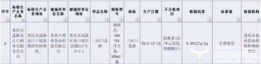 近日,运营商财经网记者从重庆市市场监管局官网了解到,三河口花酒甜蜜素检出值为0.00127g/kg(规定为不得使用),不符合标准。据悉,重庆市武隆县江口酒业有限责任公司生产、三河口花酒由重庆中堆坝食品科技有限公司销售。