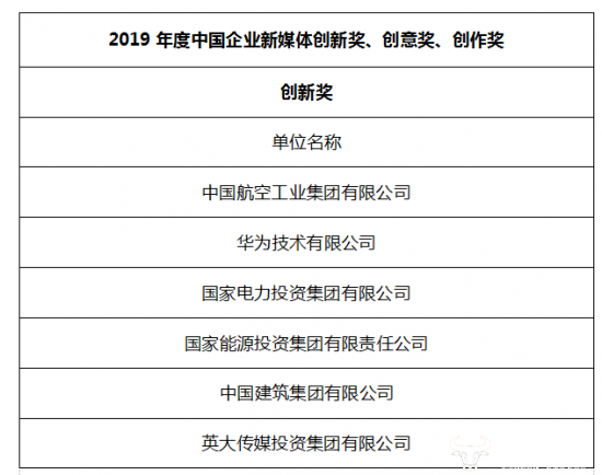 与此同时,根据中国企业新媒体账号在创新发展方面取得的突出成果,发布了“2019年度中国企业新媒体创新奖、创意奖、创作奖”。