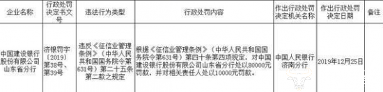 近日,中国建设银行股份有限公司山东省分行违反《征信业管理条例》(中华人民共和国国务院令第631号)第二十五条第二款之规定,中国人民银行济南分行根据《征信业管理条例》(中华人民共和国国务院令第631号)第四十条第四项规定,处以8万元罚款,并对相关责任人处以1万元罚款。