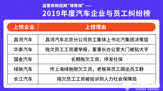 针对2019年汽车行业与员工发生的纠纷事件,运营商财经网发布了“2019年度汽车企业与员工纠纷榜”,共上榜了5家最具代表的汽车企业,结果令人意外。