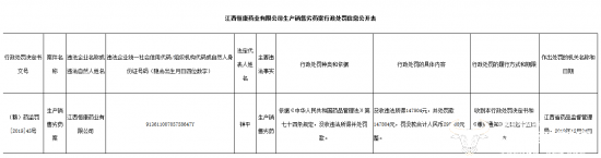 近日,江西省药品监督管理局发布的“江西恒康药业有限公司生产销售劣药案行政处罚信息公开表”显示,江西恒康药业有限公司(下简称“恒康药业”)因生产销售劣药被没收违法所得14.7804万元,并处罚款14.7804万元,罚没款合计29.5608万。