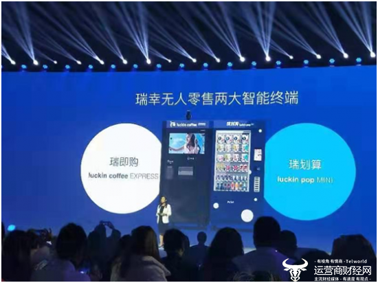 发布会上,瑞幸咖啡重磅发布了无人零售战略,推出了两款无人零售机器,一款叫“瑞即购”,一款叫“瑞划算”。