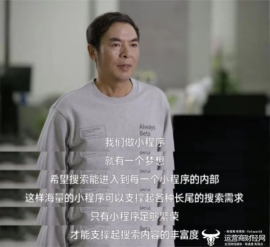 与web互联网相比,移动互联网的各个app更加割裂,信息难以打通、搜索。我们做小程序,就有一个梦想,希望搜索能进入到每一个小程序的内部,这样海量的小程序可以支撑起各种长尾的搜索需求。