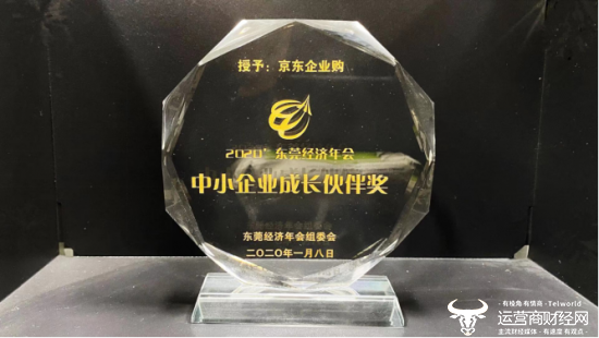 凭借在服务东莞地区中小企业方面取得的突出成绩,在1月8日由东莞经济与城市发展研究会主办的2020年第十届东莞经济年会上,京东企业购被授予“2019年度全国服务中小企业成长伙伴”奖。